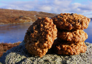 What lovely cookies and what a amazing view behind…stunning! I think I may have to bookmark this recipe…all those oats, nuts and raisins…yum! I’m off to Canada later in the year…perhaps I pick up some of the flour and make them then! 🙂