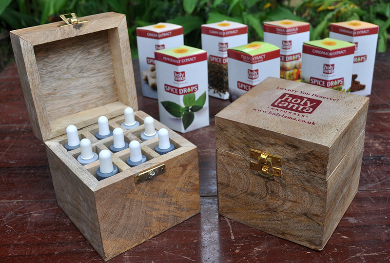 Holy Lama Naturals have very kindly offered the chance for one of my UK readers to win their Spice Drops Starter Pack containing 9 bottles of spice drops in a gorgeous solid wooden handmade box for storage. RRP £35