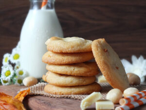 We’ve got our regular family favourites: oatmeal raisin, chocolate chip and my own personal favourite, old-fashioned soft molasses cookies, but I do love experimenting with new flavours. When a parcel of dried fruit and nuts arrived the other day from Nuts Picks, I was immediately inspired to bake some roasted macadamia nut, mango and white chocolate cookies.