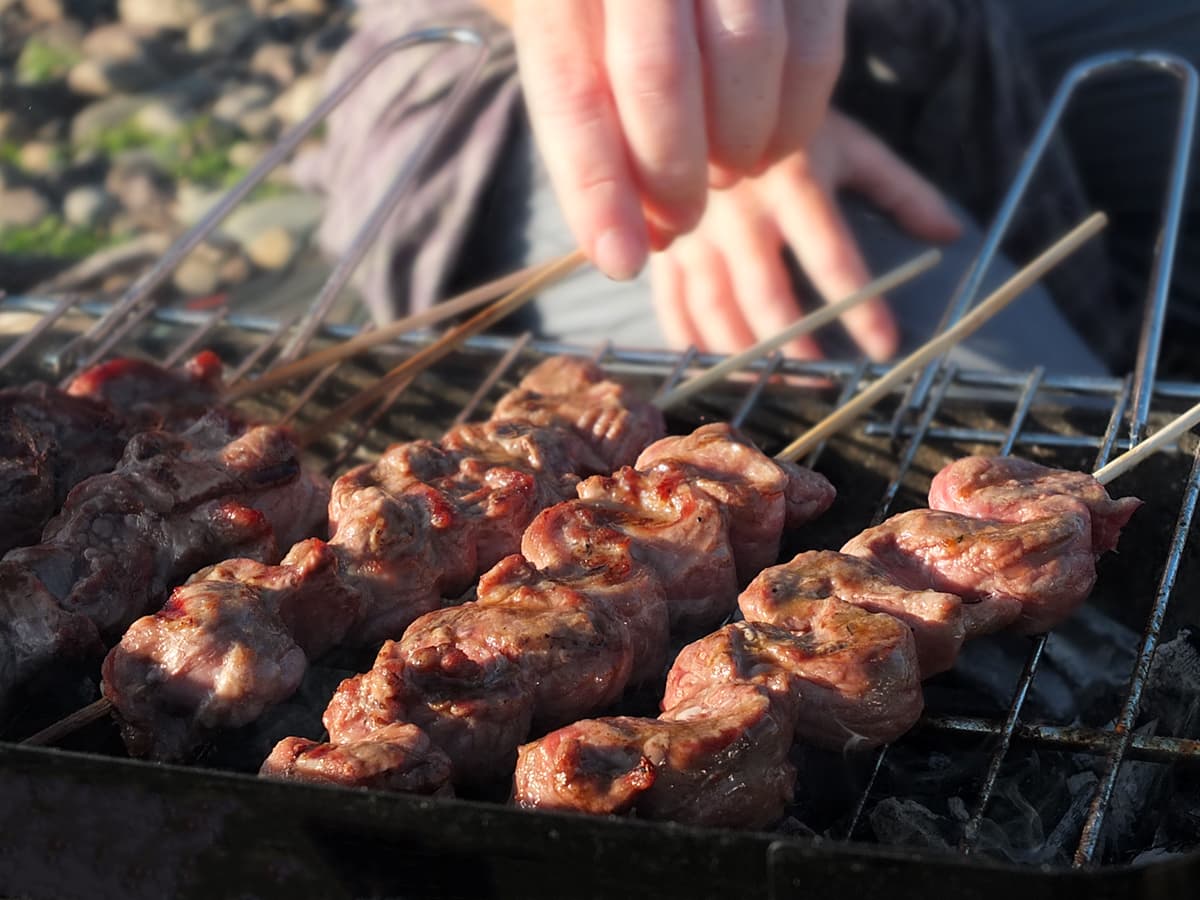 This recipe for lamb skewers is super easy to prep and cook on the beach. Serve with a selection of our three quick and easy homemade dipping sauces!