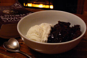 This recipe employs a rather unusual technique in that boiling water is poured over cake batter which has first been sprinkled with a cocoa powder and sugar. During the cooking process the water soaks down into the bottom of the dish resulting in a deliciously chocolatey pudding beneath a fudgey cake topping. Serve with ice cream or lashings of double cream, curl up on the couch in your PJs with a bowl of this and a good book for a very civilised Saturday evening in. I’m not ashamed to admit that any leftovers make a very nice breakfast, cold, the next morning!