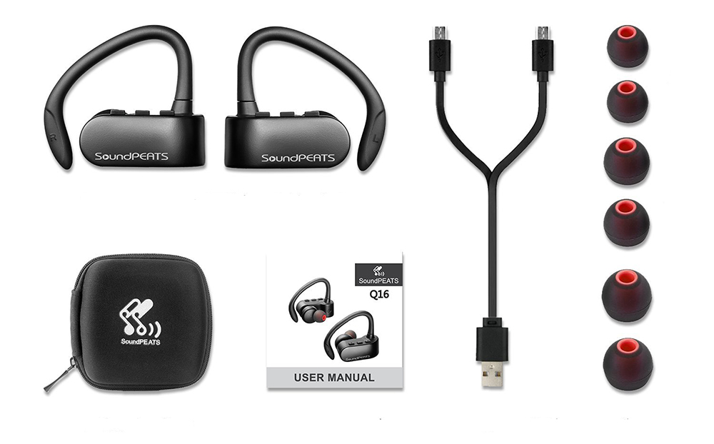 With the SoundPeats Q16 kit you get a pair of true wireless stereo Bluetooth 4.2 headphones, a carrying case, a user manual, a USB charger and three sets of earbuds in small, medium and large so you’ll be sure of finding one that is the perfect fit for you.