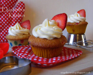 Karen over at Lavendar & Lovage has set a cooking challenge of baking with citrus fruit for a zingy start to 2013 in Tea Time Treats, a food blogging challenge alternately hosted by Karen and Kate at What Kate Baked. Also, I have recently been sent a box of goodies to try out from Sugar and Crumbs filled with flavoured cocoa powders and icing sugars, which my children have been anxious to experiment with (eat!) since it arrived. One of the icing sugars was flavoured with strawberry, so that got me thinking. My six year old daughter and I headed to the kitchen, her with her new cupcake chef’s hat and apron and me with my new copy of The Great British Bake Off: How to Turn Everyday Bakes into Showstoppers, a Christmas gift from my children which they didn’t see until I unwrapped it Christmas morning – aren’t they thoughtful! Somehow it ended in my trolley at the supermarket without anyone seeing… somehow…