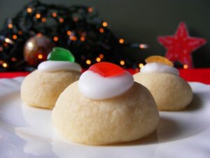 These delicious, melt-in-the-mouth whipped shortbread cookies are topped with little dollops of frosting and a tiny glace cherry. They’re super easy to make too.