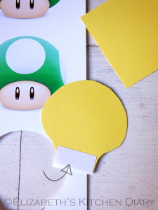 Affix a piece of double sided tape to the back of the bottom edge of the 1UP mushroom. Set aside for now.