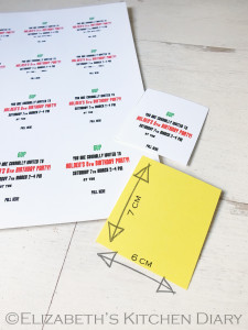 Go to Google Images and search for a 1UP image to your liking. Save to your computer. Open a Word Document (or equivalent) and insert the image manually selecting the image width to be 6.0 cm. Copy the text boxes and paste next to each other to fill the document if you are making many invitations. Print off using photo paper, selecting the highest quality ink setting.