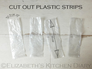Cut out one 5 cm x 15 cm strip of plastic per invitation.