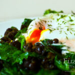 Meanwhile, arrange kale/lentil mixture onto two plates. Spoon the yogurt/feta mixture over the centre of the kale mixture.